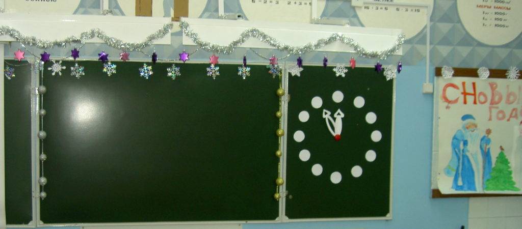 Поэтому внимание детей сконцентрировано именно на ней. Чтобы ученики смотрели на доску и получали удовольствие, можно украсить класс к Новому году своими руками
