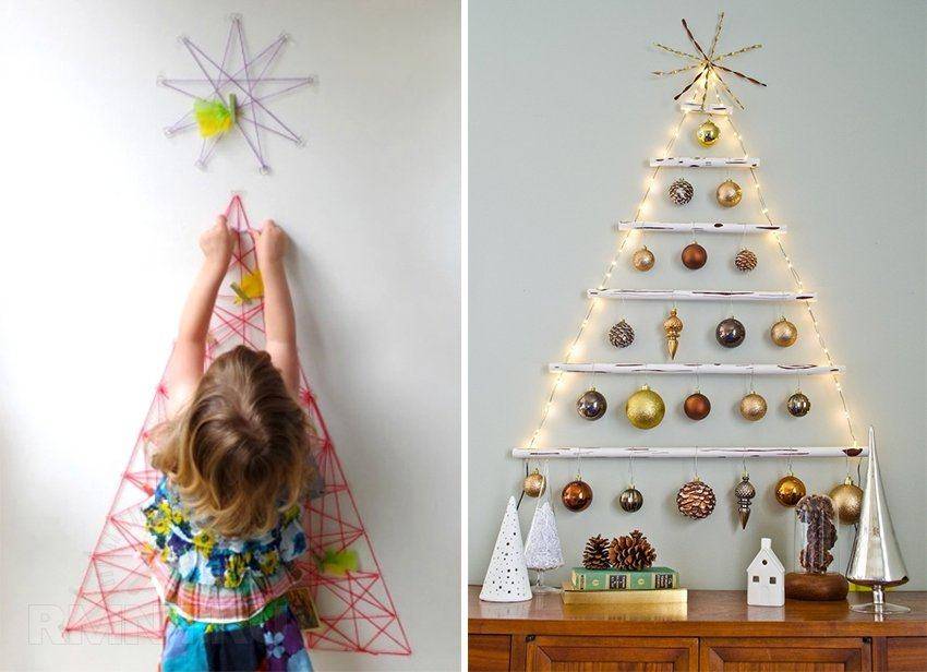 Веселым вариантом для детей станет нестандартная новогодняя елка, сделанная своими руками. Нужно нарядить только ветку, а не всю елку, использовать любое растение, сделать дерево, используя школьные принадлежности. Полет фантазий на данную тему неограничен. Главное в этом деле — создание атмосферы праздника, веселья.