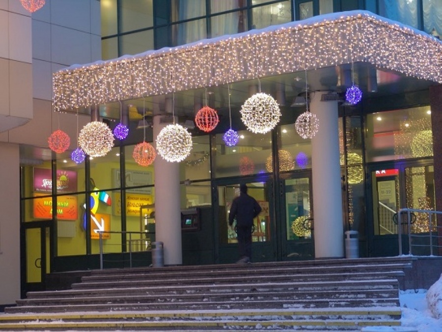 Современное новогоднее оформление школьного фасада