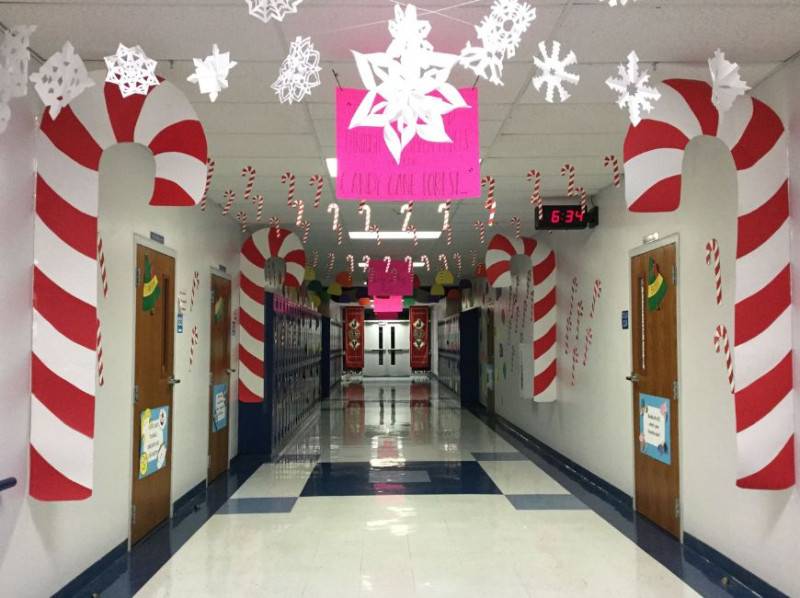 Чтобы красиво и неординарно украсить дверь и стены в классе к Новому году, можно использовать: