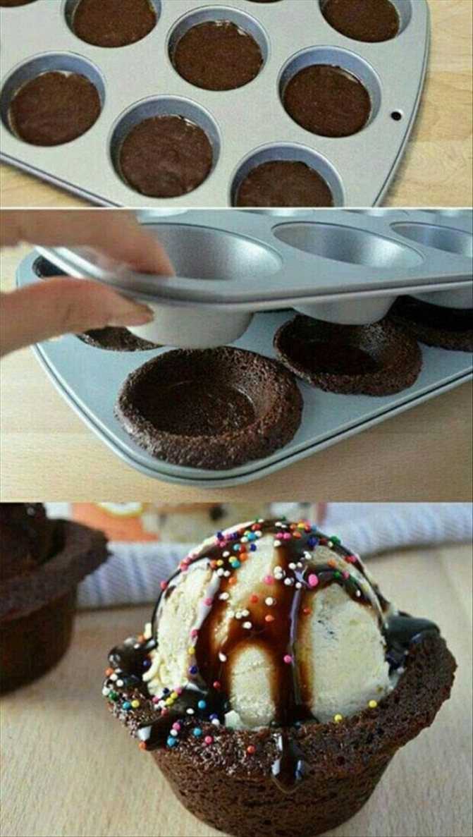 Испеките в форме кексы, а затем сверху выложите мороженое. Получается очень вкусно.