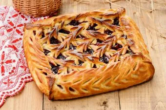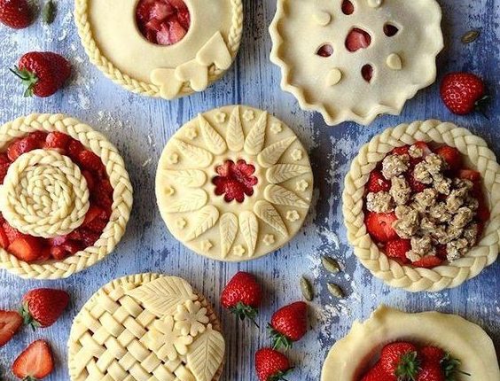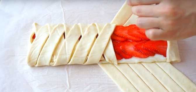 Существует множество идей, как украсить торт из слоеного теста полосками, решетками, косами или сложными узорами. Ножи, чайные, столовые ложки и вилки, формочки для печенья и воображение — все это может помочь. Лучше всего начинать свои эксперименты по украшению сладкой выпечки с простых техник и постепенно усложнять элементы плетения.
