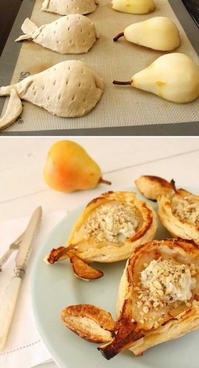Очистите груши. Разрежьте пополам, накройте слоеным тестом и запеките.