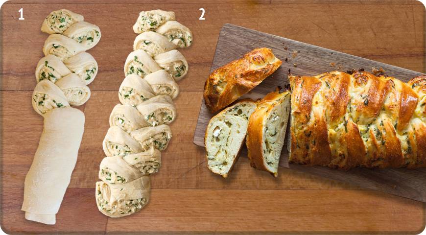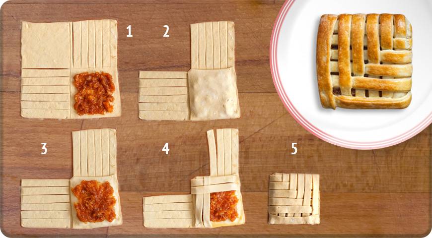 А вот самая привычная основа для всех пирогов и пирожков — пласт теста. Что можно с ним сделать, как вывернуть, надрезать и свернуть, покажем на примерах.