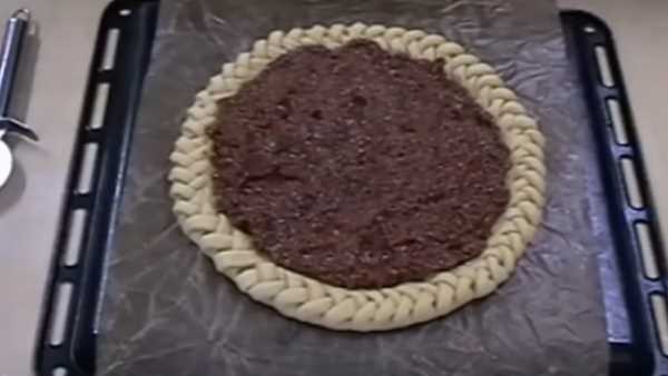 Таким способом получится равномерно распределить начинку внутри, одновременно подгоняя пирог под размер формы в которой он будет выпекаться.