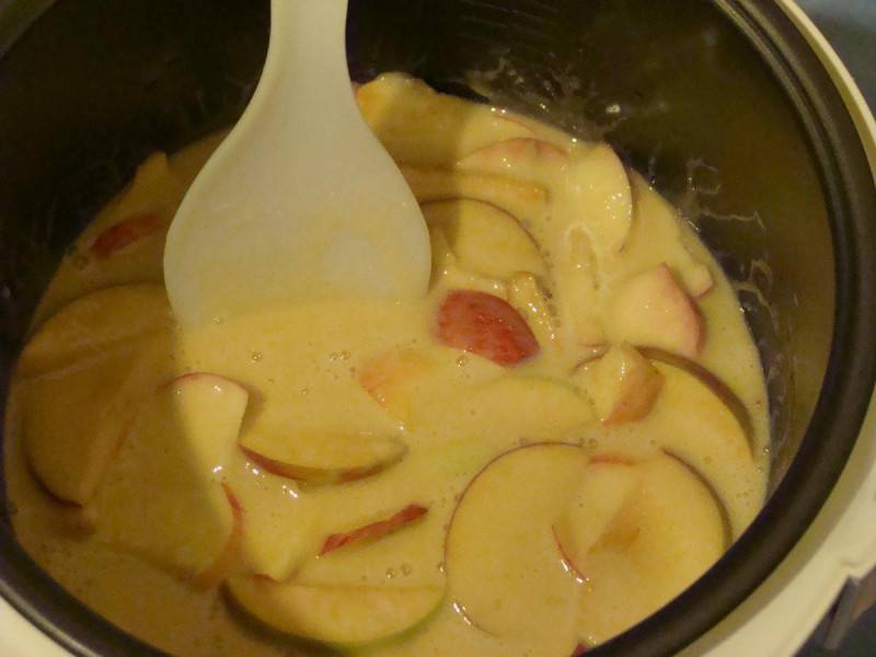 - Всыпать ломтики очищенных яблок, опять перемешать.
