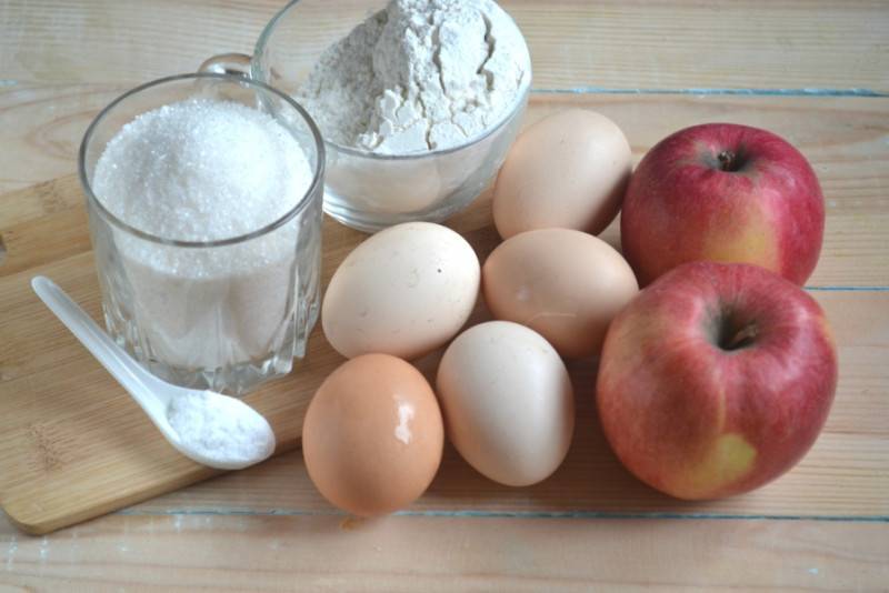 Удивительно, но шарлотку можно испечь с меньшим количеством яиц, зато с кефиром.