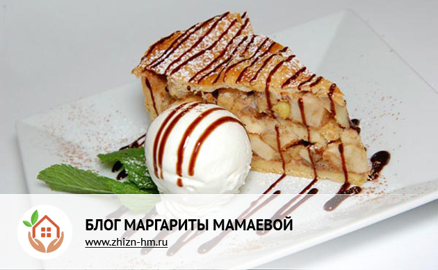 Добавьте при подаче к кусочку шарлотки шарик мороженного и у вас получится изысканный десерт.