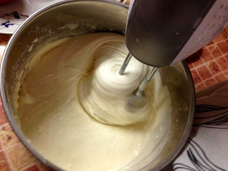 Потом смешать две полученные массы и еще раз хорошенько всё взбить.