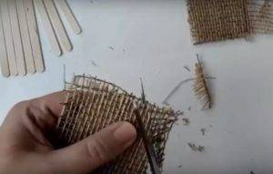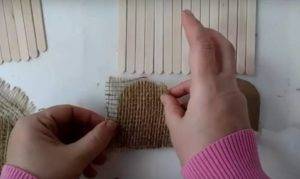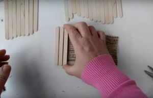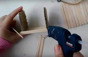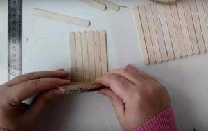 – Справа и слева приклейте по одной палочке, чтобы закрепить основу.