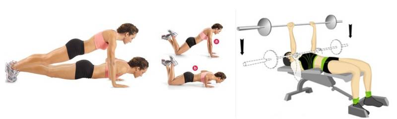 - отжимания от пола и с колен;