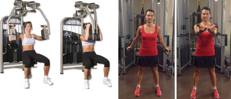 - сведение рук с использованием тренажеров.