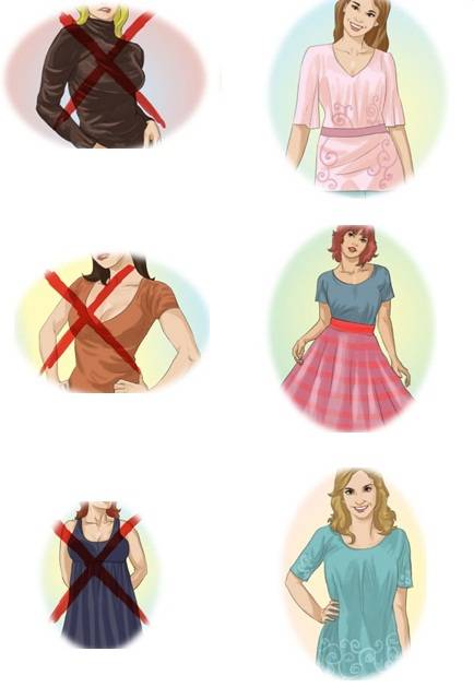 избегать обтягивающих кофточек, водолазок, свитеров;