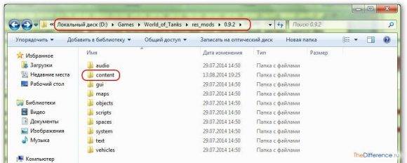 Открываем папку с игрой WoT и заходим в папку res_mods. Выбираем папку 0.9.Х и кликаем по ней. Теперь вам нужно создать несколько папок. В папке текущего апдейта создаем директорию content, в ней – Interface.