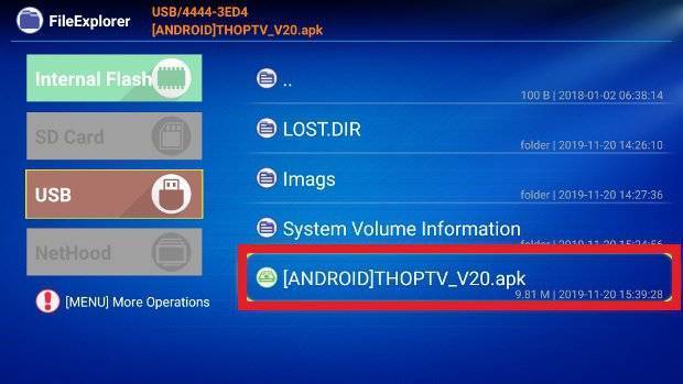 Получите доступ к USB-накопителю и нажмите на APK, который хотите установить