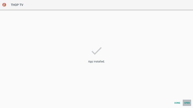 В это время вы сможете открыть приложение с помощью кнопки Open или найти его значок в меню приложений, установленных на Android TV.