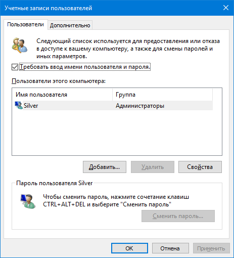 2) Если вы хотите вообще отключить показ окна ввода пароля, то нажмите Win+R, и введите команду control userpasswords2 (как на примерах выше).
