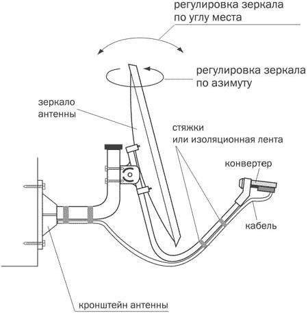 Первое, что необходимо сделать для установки тарелки, заключается в закреплении кронштейна. При этом стоит учитывать силу ветра, вес оборудования и материал, из которого сделан дом. Далее нужно переходить к подготовке самой тарелки. Для этого требуется: