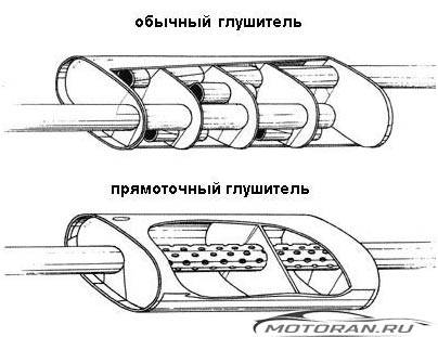 Иногда для снятия большей мощности с двигателя, особенно на гоночных авто, ставят прямоточный выхлоп, который создает минимальное сопротивление отработанным газам. Минус такого решения – повышенная шумность на низких частотах, поскольку таковые не поглощаются глушителем.