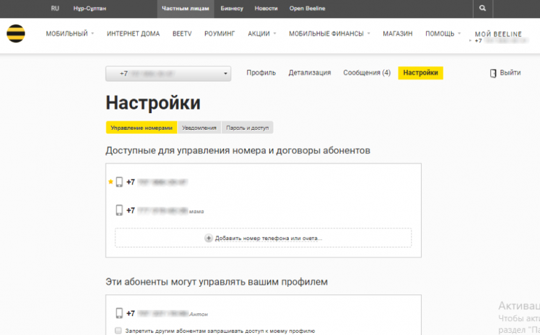- Для подключения услуги введите номер человека, который сможет проверять ваш баланс.