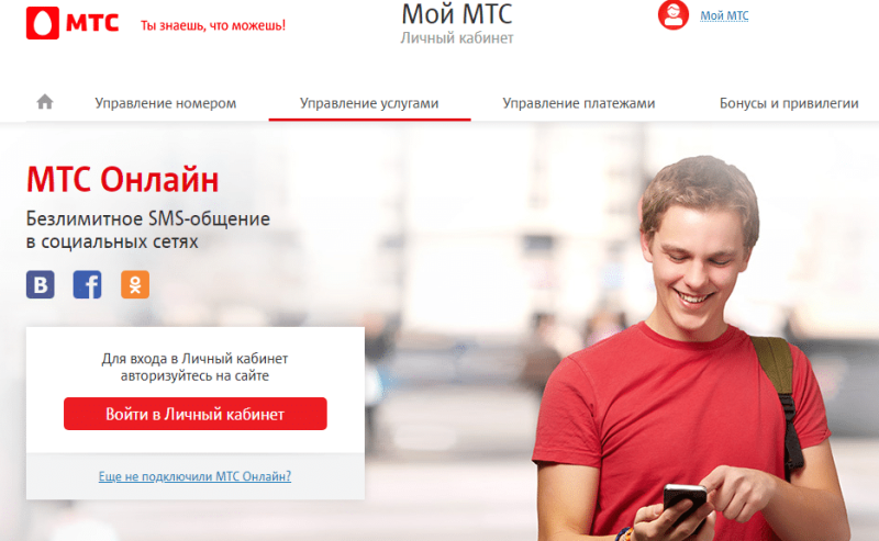 После авторизации нужно зайти в пункт меню «Управление услугами». на экране откроется информация обо всех подключенных услугах.