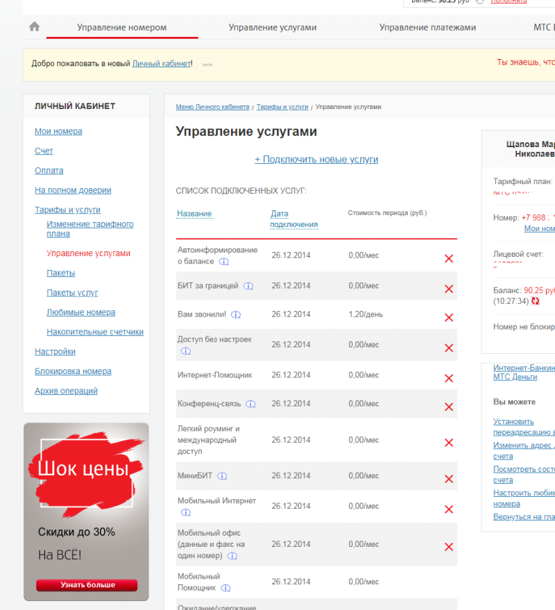 , где вам прочитают список подключенных услуг платного характера и при необходимости помогут отключить ненужные.