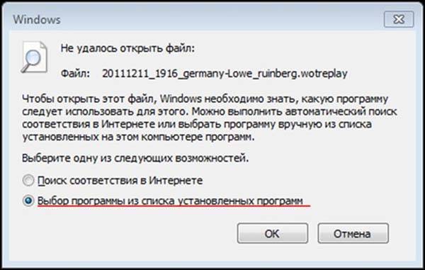 Как вы могли заметить, файл реплея имеет формат wotreplay, открыть и смотреть который на компьютере довольно просто: необходимо закрыть клиент игры и запустить файл реплея. Если компьютер не сможет распознать формат, то Вам необходимо будет указать путь к программе, через которую произойдет воспроизведение: