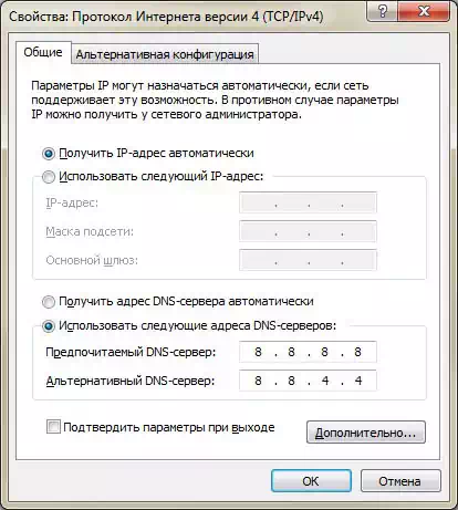 Поставьте галочку напротив «Использовать следующие адреса DNS-серверов» и впишите следующие цифры, как на скриншоте ниже: