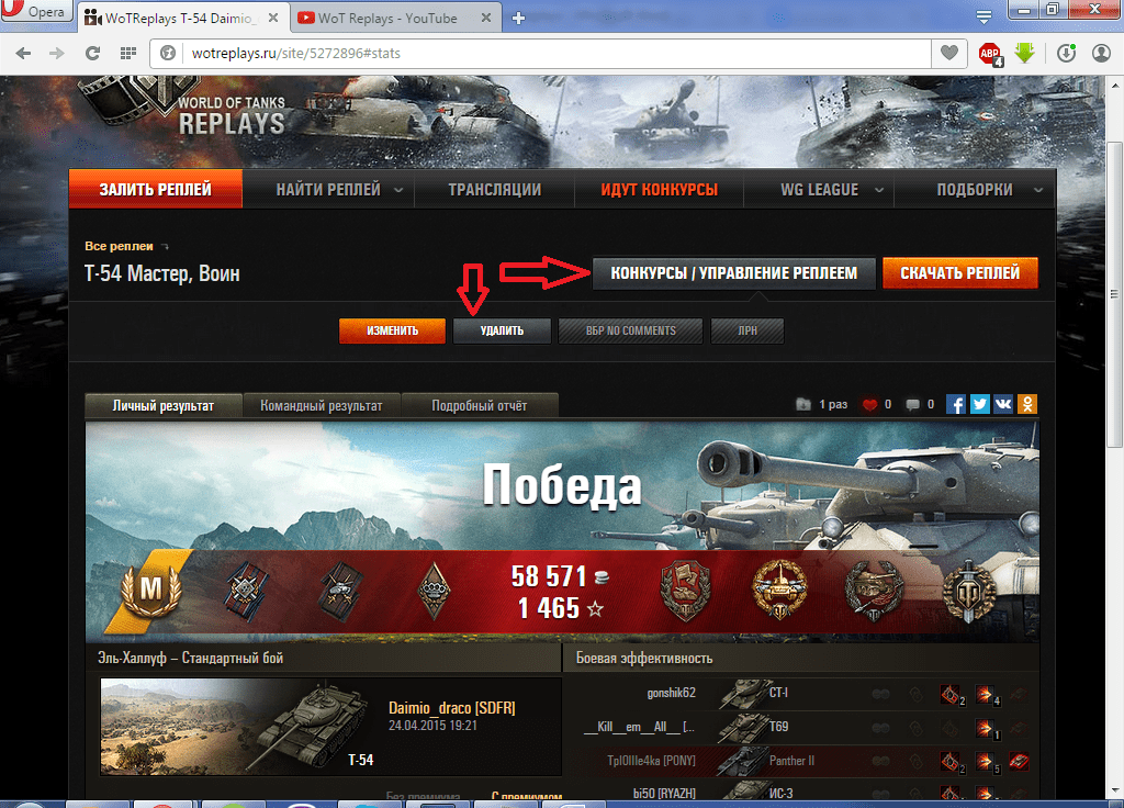 - загрузить реплей на сайт wotreplays.ru, не выходя из игры.