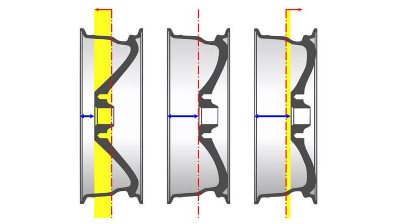 С учетом такой особенности диски с большим положительным вылетом получают плоские спицы, которые не смещены к центру и могут быть даже выпуклыми. Диски с небольшим вылетом, напротив, отличаются «утопленным» центром и спицами, которые тянутся к ободу от центра. Также допускается вариант, когда сама «полка» обода сильно расширена.
