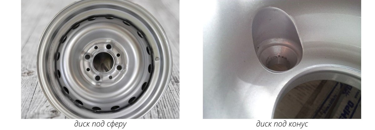 Использование болтов и гаек, которые не соответствуют посадочному отверстию (конусных для сферических отверстий и наоборот) – приведёт к тому, что болт/гайка будут не всей кромкой прилегать к диску. А значит – посадочное отверстие будет разбиваться, что может привести к печальным последствиям, вплоть до потери колеса во время движения.