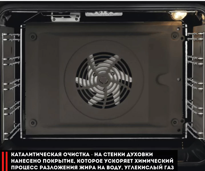 - Каталитическая очистка. Данный вид очистки напоминает нанотехнологии, когда, невидимые глазу жучки, сами очищают жирную поверхность. Но на самом деле все проще…Потому как на стенки духовки нанесено покрытие, которое ускоряет химический процесс разложения жира на воду, углекислый газ и органические остатки. А оставшаяся органика сгорает в процессе готовки! Вам остается только влажной салфеткой смахнуть пылинки. Однако есть существенный минус — данное покрытие со временем разрушается.