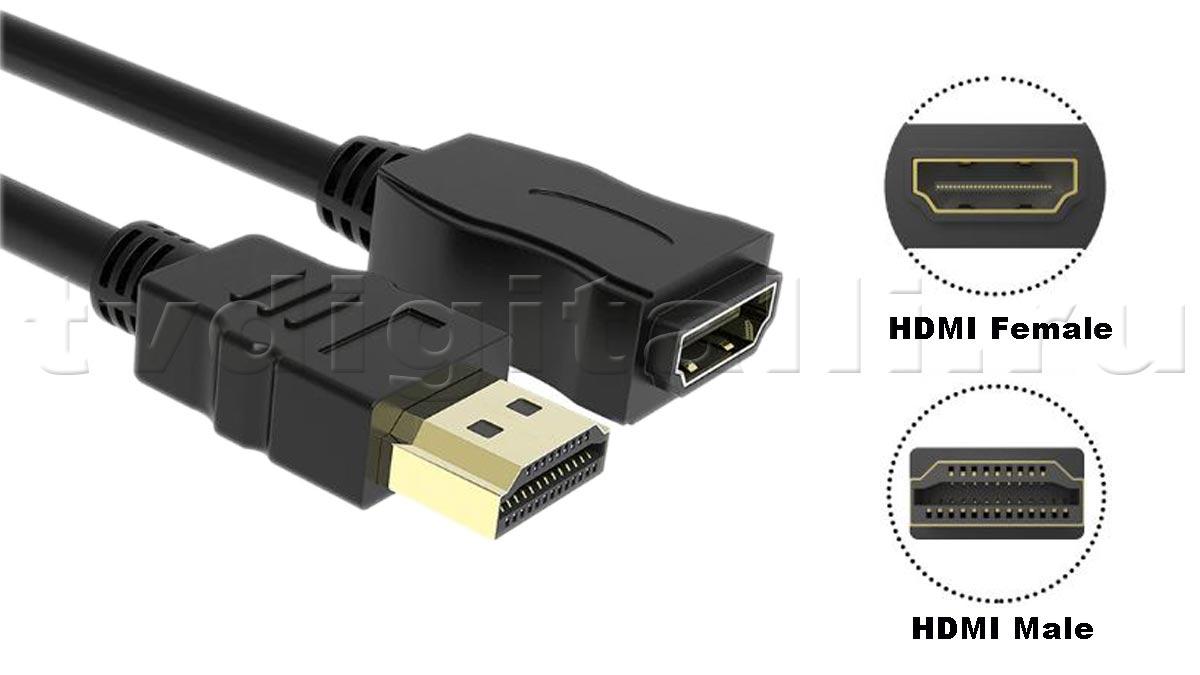 Технология HDMI подразумевает высокое качество разъёмного соединения. Разъёмы HDMI кабель может иметь разные. Классический цифровой провод имеет два штекера («папа»). В продаже вам могут встретиться проводы с гнездовым контактом («мама») с одной стороны и штекером («папа») на другой стороне в качестве удлинителя. Также есть оконцеватели в угловом или поворотном варианте, которые будут полезны, например, когда вы навешиваете телевизор на стену.