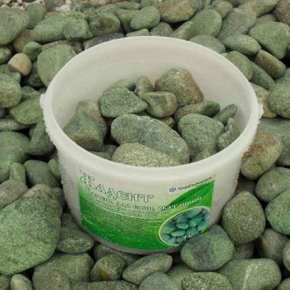 Жадеит – идеальный камень для банной печи, ценится за приятный изумрудный оттенок, высокий терапевтический эффект, термостойкость и исключительную прочность