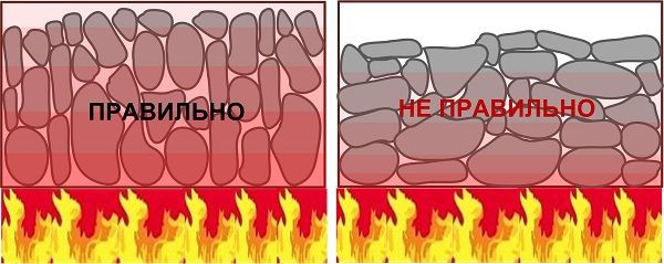 Способ выкладки булыжников в печь указан на заводской упаковке. Если они были приобретены без тары, тогда стоит соблюдать некоторые рекомендации по выкладке камней.