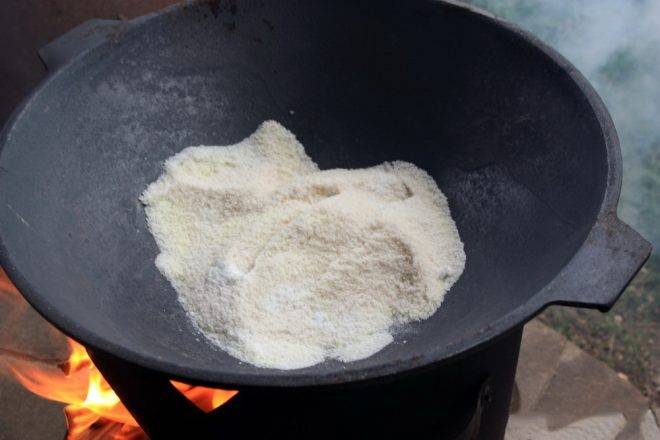 Прожарка должна длиться до тех пор, пока с поверхности не исчезнут темные пятна и не перестанет валить черный резко пахнущий дым.
