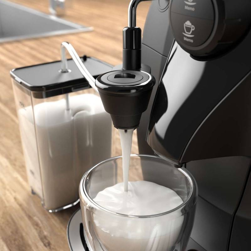 Специальный агрегат с отсеком для молока и устройством для его взбивания — капучинатором. Бывают варианты с отводящей трубкой, которая забирает молоко из отдельно стоящей емкости.