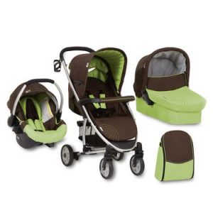 Состоит из колёс (база) и собственно модулей: отдельно люлька, которая ставится на базу, отдельно прогулочный сидячий блок, отдельно авто-кресло.