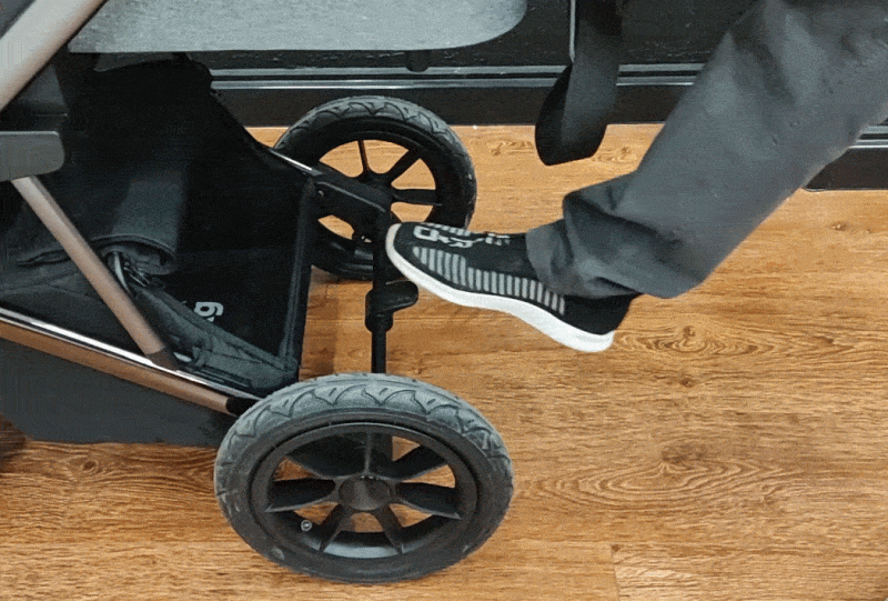 Чтобы разблокировать тормоз, приходится поддевать его носком обуви снизу