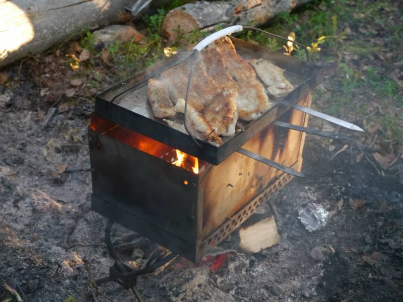 - Переносные (мини-коптильни). Хороши для использования на садовом участке, рыбалке, пикнике. Обладают небольшим весом, компактны. С ними просто работать, однако ввиду их маленького размера нельзя закоптить много продуктов за один подход.