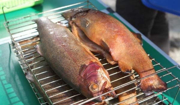 - Средняя рыба (400−500 г) коптится горячим способом 40 минут, холодным — 3 дня.