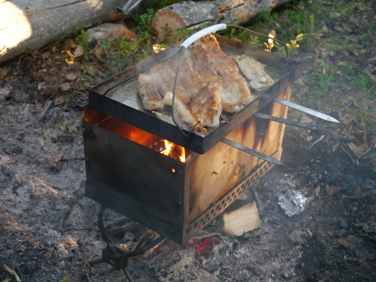 - Переносные (мини-коптильни). Хороши для использования на садовом участке, рыбалке, пикнике. Обладают небольшим весом, компактны. С ними просто работать, однако ввиду их маленького размера нельзя закоптить много продуктов за один подход.