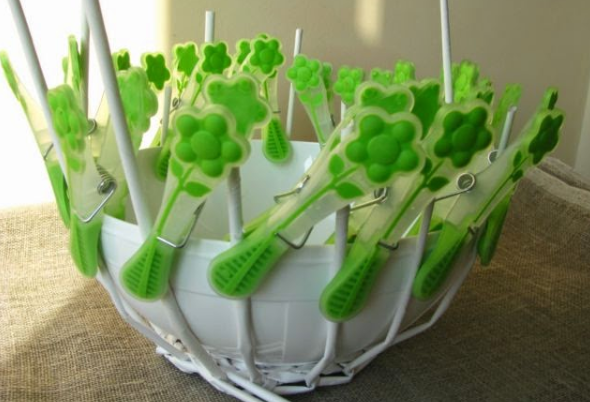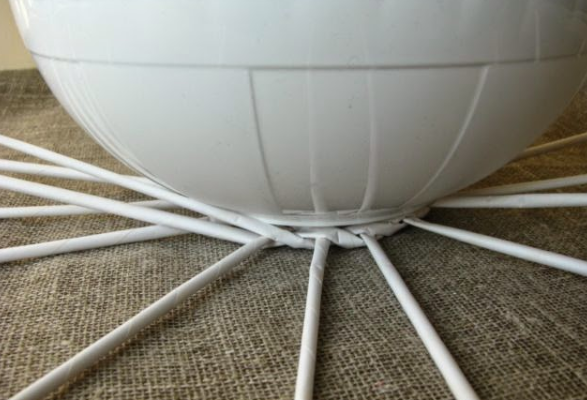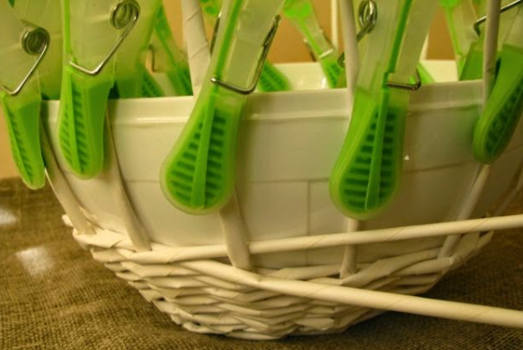 Ставим внутрь заготовки круглую форму, трубочки поднимаем вверх, закрепляем прищепками.
