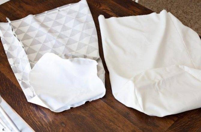 Если вам нужна более жесткая корзина – вышеописанным способом изготовьте для нее еще один чехол. Вставляем один в другой так, чтобы они были изнанкой друг к другу, и совмещаем кромки, подворачивая и скалывая булавками.