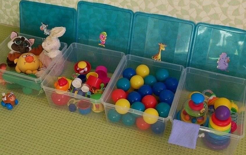 Прежде всего, все игрушки следует рассортировать. Игры, наборы для бадминтона уместно положить в деревянные или картонные коробки.