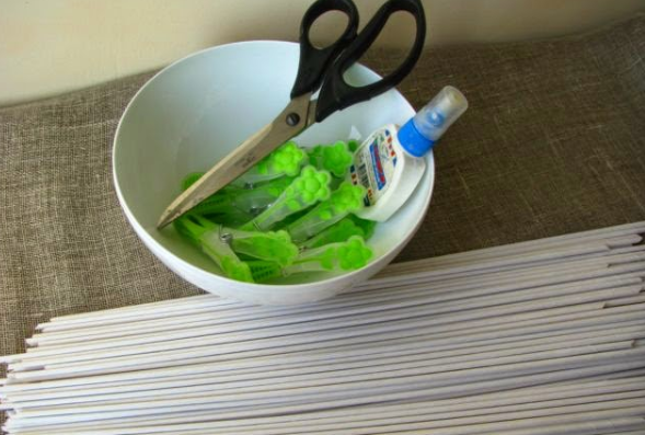 Приступаем к изготовлению ручки. Для работы подготовим 12 трубочек, 6 заводим с одной стороны, сгибаем пополам.