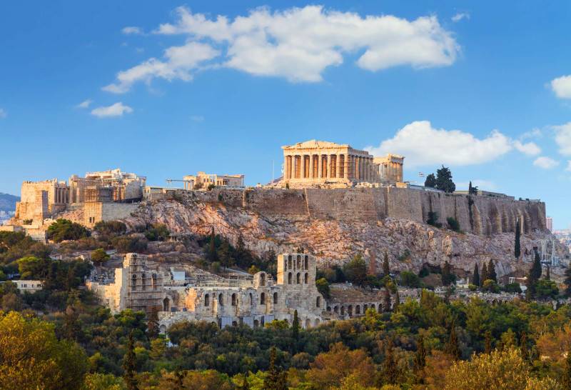Афинский Акрополь. Здание является своеобразным символом столицы страны. Историческим сооружениям удалось пережить немало катаклизмов и войн и остаться целыми.