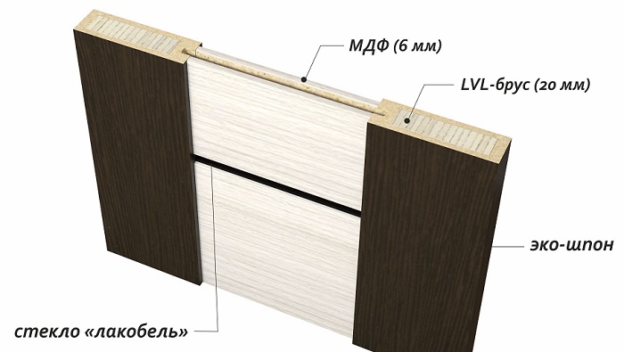 Сверху к ней крепятся плиты МДФ или ДСП, для обшивки которых применяется шпон, экошпон или ламинат.