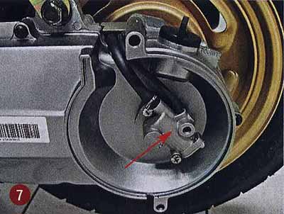 Зная его объем, потом сможете определять, как долго можно двигаться с загоревшейся лампочкой. Маслонасос расположен в приводе заднего колеса (указан стрелкой на фото 7). Не зная некоторых тонкостей его работы, двигатель можно запросто угробить. Учтите: