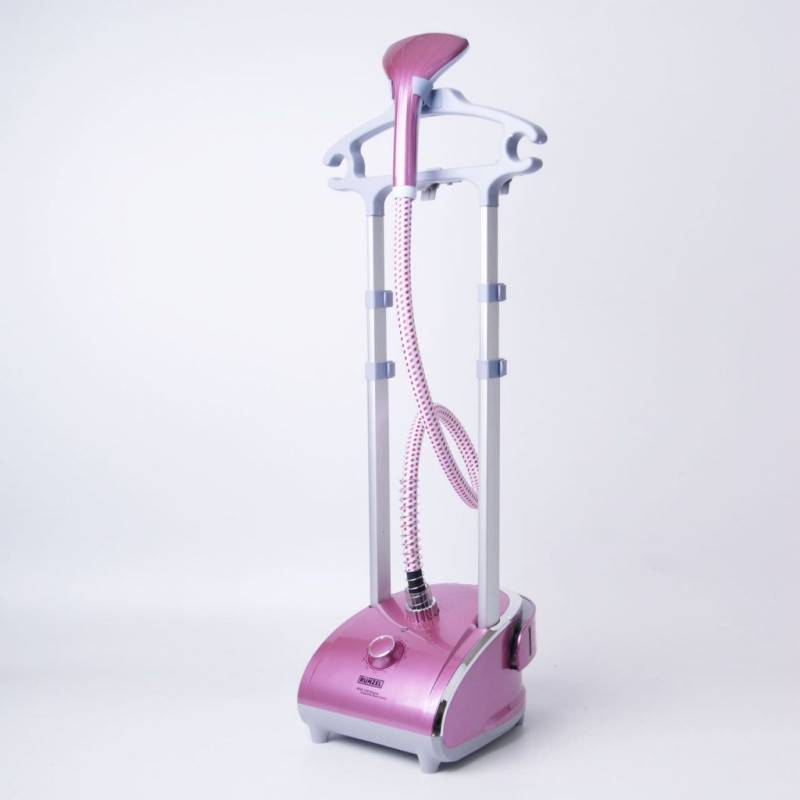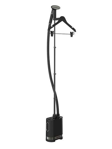 Вертикальный отпариватель, или напольный, – более массивный и габаритный агрегат. Его удобно использовать дома и обрабатывать за один раз несколько вещей. Напоминает пылесос – состоит из корпуса, в котором помещается ёмкость с водой и парогенератор, а также парового шланга с утюжком на конце. Укомплектован стойкой, на которую удобно вешать одежду.